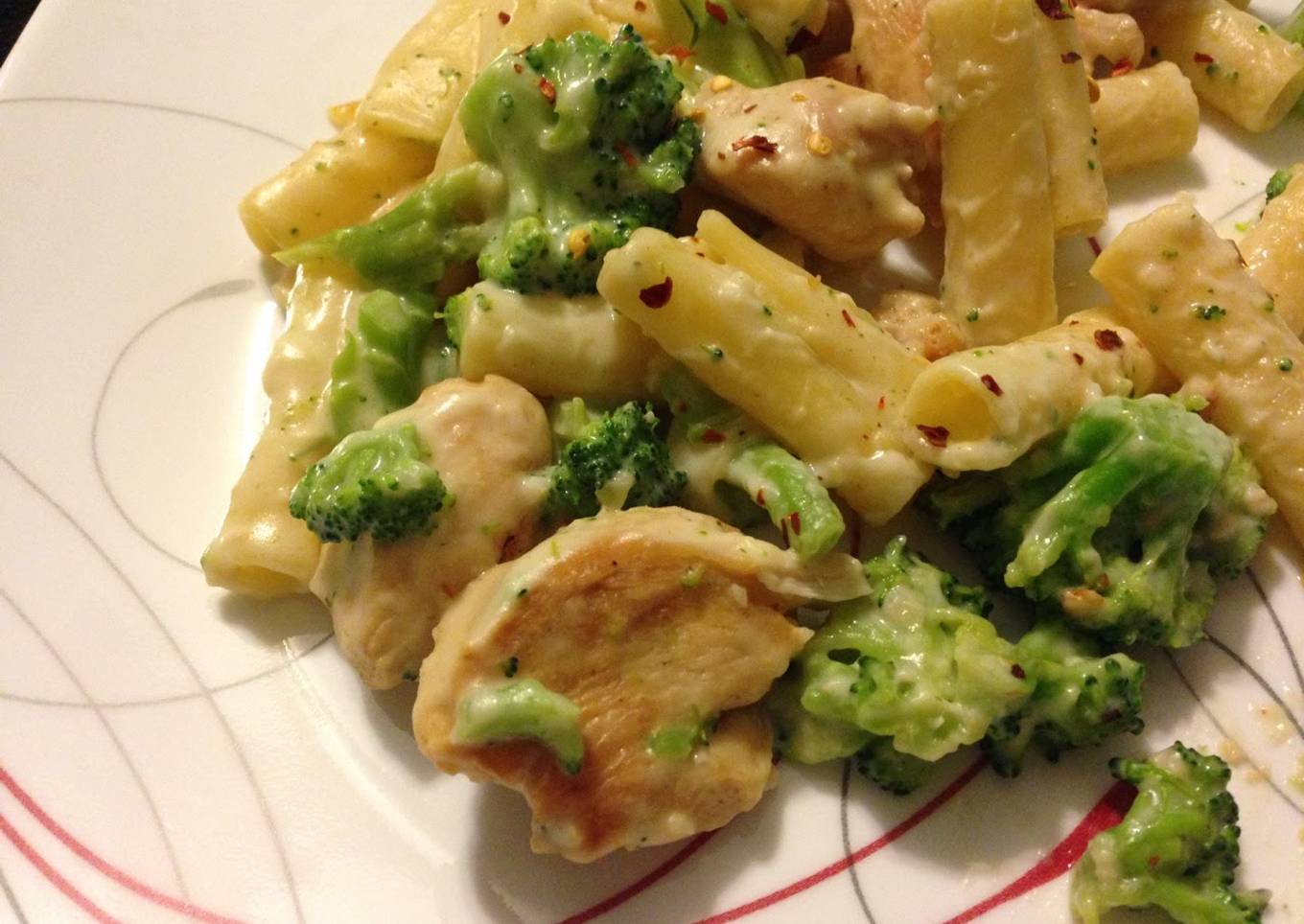 - Mix chicken, brocoli, cooked pasta and stir in parmesan sauce on low heat